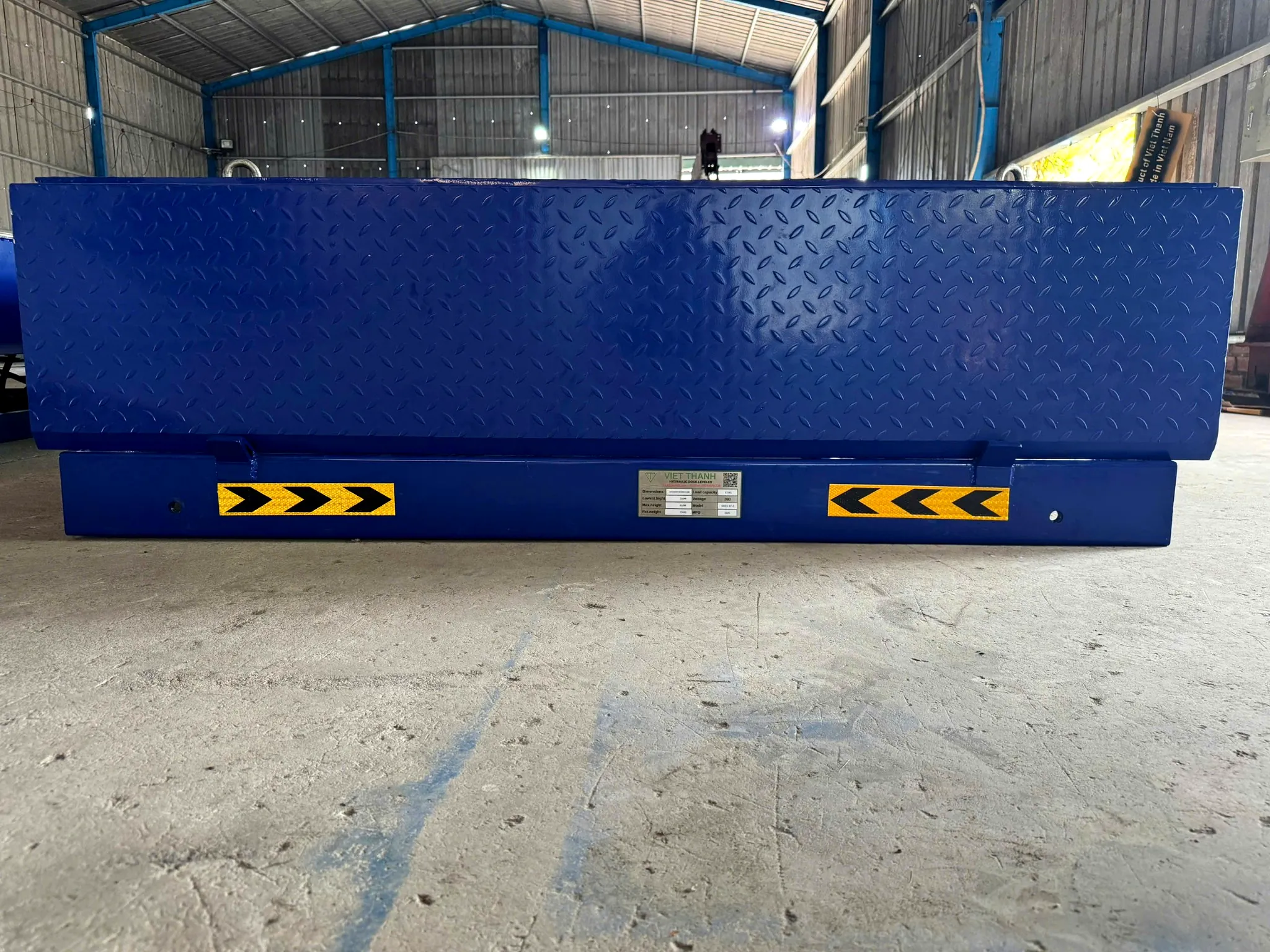 Sản phẩm Dock Leveler của Việt Thành được sàn xuất theo tiêu chuẩn CE 2006/42/EC: EN1398 với kết cấu thép mạnh mẽ, gia công laser chính xác, hàn robot đồng đều, cùng hệ thống thủy lực đạt chuẩn công nghiệp, giúp thiết bị hoạt động bền bỉ trong môi trường tải nặng, tần suất làm việc liên tục và đáp ứng yêu cầu khắt khe của thị trường xuất khẩu.